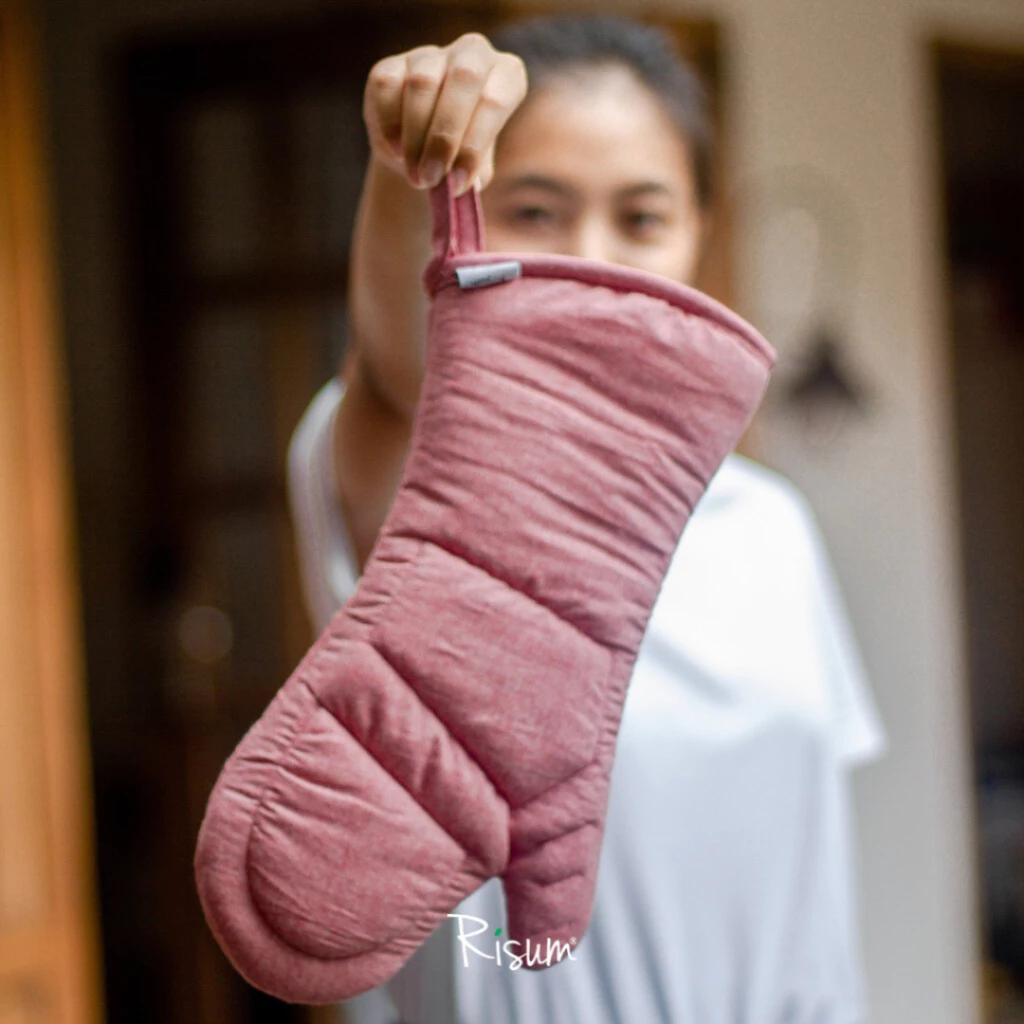 Berisi 1 pcs sarung tangan panjang dan tebal (3 layers). Mampu melindungi tangan dari suhu panas oven.