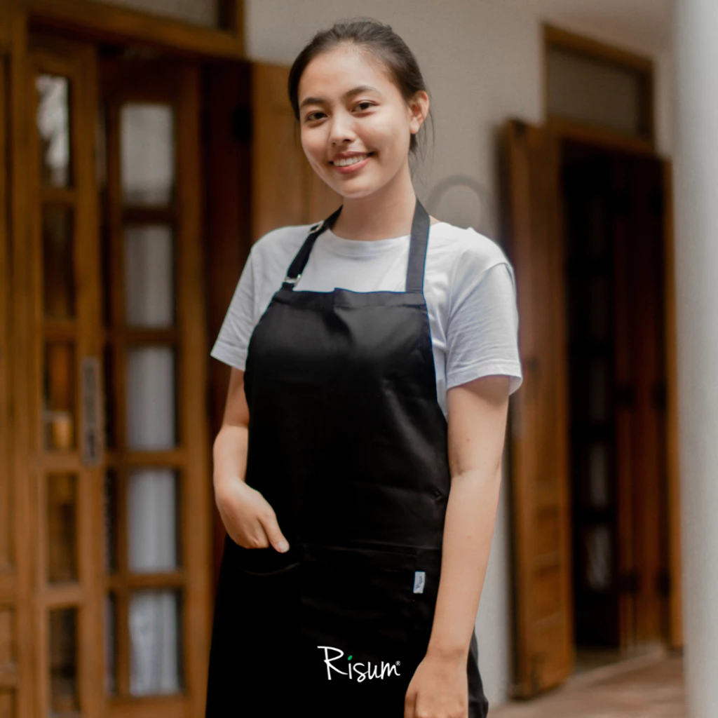 RISUM Apron Celemek Klasik Hitam (Free Bordir Nama)